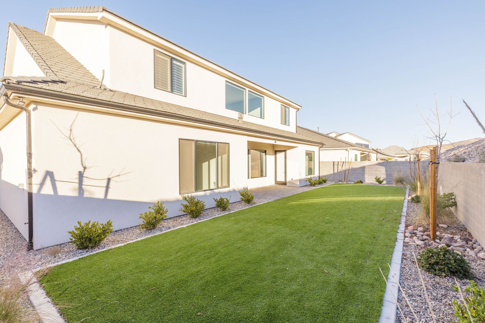 Introducing a stunning 3,831 sq. ft. home in the highly desirable Desert Canyons community. This beautifully designed residence features 5 bedrooms, 3.5 baths, and an executive office. The interior showcases gorgeous flooring, exquisite countertops, beautiful custom cabinetry, and elegant window coverings throughout. Every bedroom is equipped with ceiling fans for added comfort. The fully fenced and professionally landscaped yard includes easy-to-maintain turf, offering a perfect blend of beauty and low upkeep. A truly exceptional property ready to impress.
