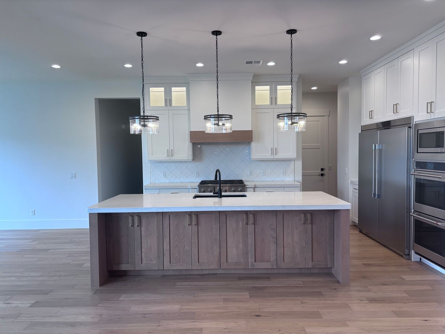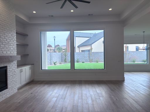 Experience elevated single-level living in this exceptional 3,148 sq ft home in sought-after Majestic Fields. The gourmet kitchen boasts top-tier appliances with an oversized fridge, complemented by premium flooring, custom cabinetry, and gorgeous countertops throughout. With 4 bedrooms, 4 baths, a refined home office, and ceiling fans in every bedroom, comfort meets sophistication at every turn. Both front and rear yards are finished with luxury low-maintenance turf, while the backyard offers a hot tub, firepit, and trampoline. An oversized RV garage completes this impressive property, all set just moments from shopping and dining.